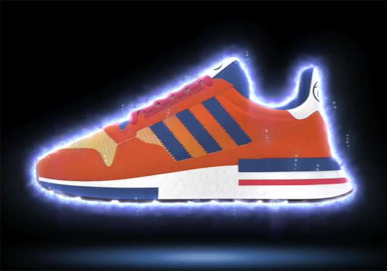 Sepatu pertama adalah Adidas ZM 500 RM yang didesain berdasarkan karakter Son Goku. Sepatu ini memilik warna yang serupa dengan kostum digunakan oleh Goku dalam seri anime tersebut. Warna oren dan biru menjadi dasar warna dari sepatu ini. Selain itu, mesh yang menggunakan warna kuning seakan melambangkan kekuatan saiyan yang tersembunyi dan akan bangkit keluar sewaktu-waktu. Di sisi desain sepatu terdapat gambar awan kinton yang biasa digunakan oleh Son Goku, serta beberapa detail kecil lainnya yang membuat sepatu ini terlihat menjadi lebih menarik.