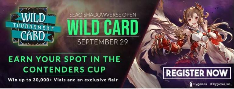 Turnamen Wild Card akan diadakan pada tanggal 29 September ini, dan bagi kalian yang ingin mendaftarkan diri kalian cukup mengunjungi link berikut: http://bit.ly/seao-sv-wildcard atau http://shadowverseopen.com/.