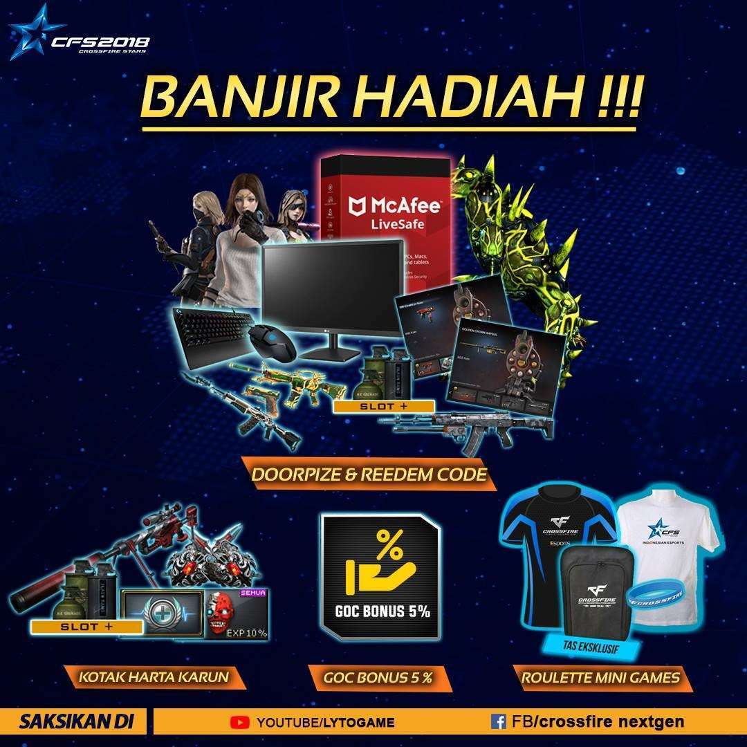 Tim Crossfire Next Generation sudah menyiapkan beragam hadiah di Minigame Kotak Harta Karun, Roulette Minigame, dan juga Doorprize yang akan diberikan bagi kamu yang datang dan melakukan redeem code yang akan diberikan selama acara berlangsung di venue. Untuk melakukan redeem code kamu cuma harus login menggunakan account Lytogame di website Crossfire Next Generation.