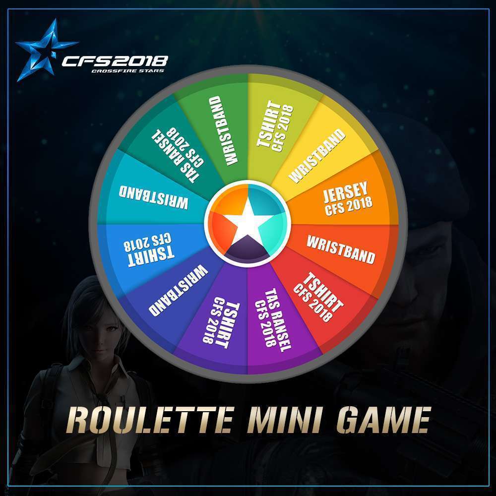 Dalam memeriahkan CFS 2018, Tim Crossfire Next Generation menyiapkan event menarik yaitu Roulette Minigame yang akan diadakan ditempat berlangsungnya pertandingan CFS 2018 Indonesia National Final. Kamu berkesempatan untuk mendapatkan merchandise eksklusif Crossfire Next Generation yang limited edition hanya bisa kamu dapatkan di event ini.