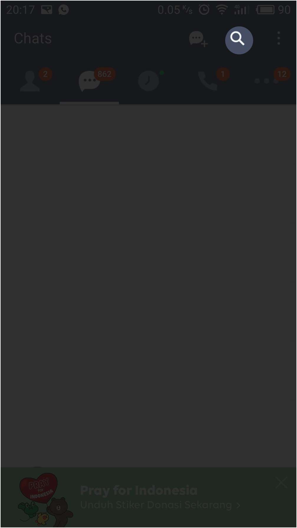 Pertama-tama, buka aplikasi LINE Live Chat yang sudah terpasang pada handphone kesayanganmu kemudian pilih tombol kaca pembesar yang terletak di pojok kanan atas untuk mencari dan menambahkan teman.