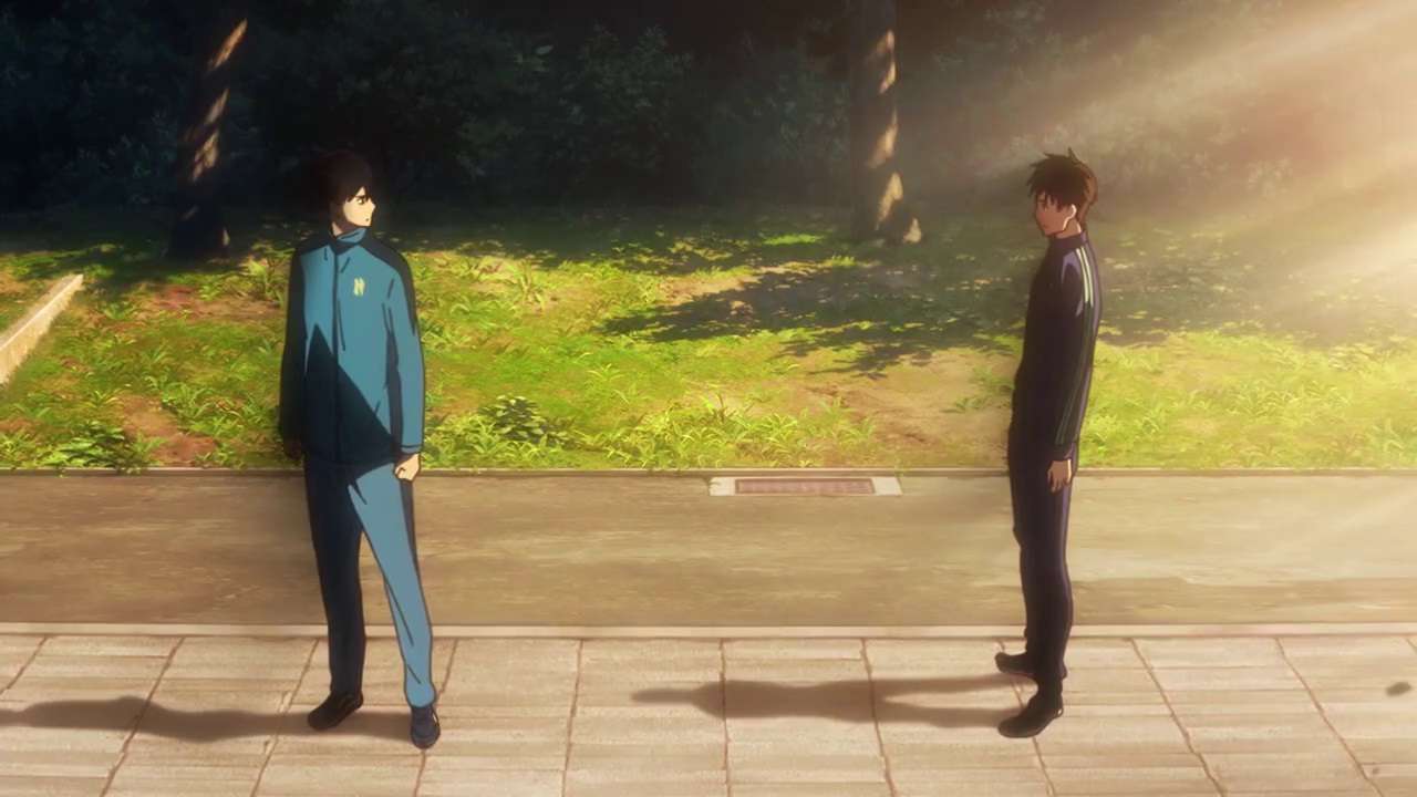 Bagaimana dengan animenya? Secara penulisan, cerita episode perdana Kaze ga Tsuyoku Fuiteiru menggunakan in medias res di mana cerita dimulai dari tengah. Paruh pertamanya berfokus pada karakter Kakeru yang baru saja bertemu dengan Haiji dan berkenalan dengan para penghuni asrama lain, sedangkan paruh kedua berfokus pada karakter Haiji bersetting beberapa saat sebelum pertemuannya dengan Kakeru. Pendekatan ini mungkin dilakukan karena sang penulis ingin memastikan Kakeru dan penonton berkenalan terlebih dahulu dengan kedelapan penghuni asrama lain sebelum paruh pertama usai. Efeknya, paruh kedua dapat mengalihkan fokus karakternya dengan maksimal pada Haiji dan Kakeru. Beberapa penonton mungkin akan menganggap perbuatan Haiji yang menipu teman asramanya agak berlebihan. Namun penonton juga dapat mengimplikasikan bahwa Haiji memiliki alasannya sendiri melalui adegan yang memperlihatkan bahwa kakinya pernah cedera dan fakta bahwa ini merupakan tahun keempatnya di Universitas. Percakapan keduanya juga mengimplikasikan bahwa Kakeru sendiri memiliki pengalaman di klub atletik, meski dia terkesan tertutup dan defensif saat membicarakannya.
