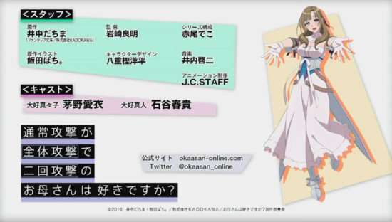 公式HPをチェックしてください→ https://t.co/wvw6ad3Yf2#お母好き pic.twitter.com/Q0hEBxiIjV— アニメ「通常攻撃が全体攻撃で二回攻撃のお母さんは好きですか?」 (@okaasan_online) October 21, 2018