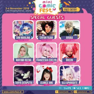 Guest stars yang menarik ditambah dengan rangkaian acara yang seru, membuat acara Mini Comicfest ID 2018 menjadi acara tahunan yang pastinya tidak boleh dilewatkan oleh para pelaku sekaligus penikmat komik dan cosplay Indonesia! Yuk ajak teman-teman kamu untuk datang ke Mini Comicfest ID 2018!