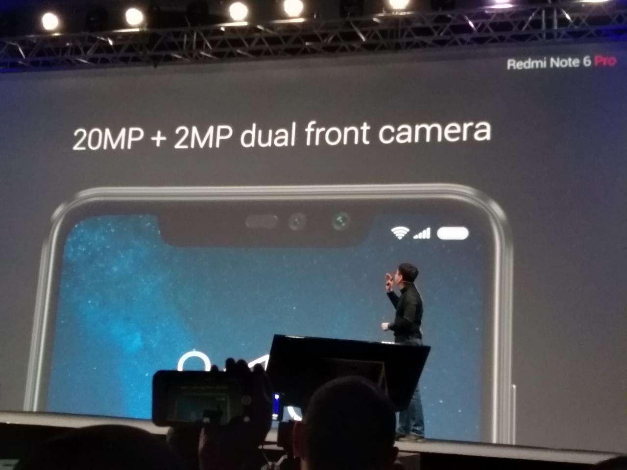 Redmi Note 6 Pro merupakan ponsel Xiaomi pertama yang memiliki modul kamera ganda di depan dan belakang. Pengaturan kamera ganda bagian depan terdiri dari kamera utama 20MP dengan teknologi Super Piksel 1.8um yang menggabungkan informasi dari empat piksel menjadi satu piksel untuk menangkap lebih banyak cahaya, memberikan pengguna gambar-gambar yang lebih baik bahkan ketika kondisi pencahayaan tidak sempurna.