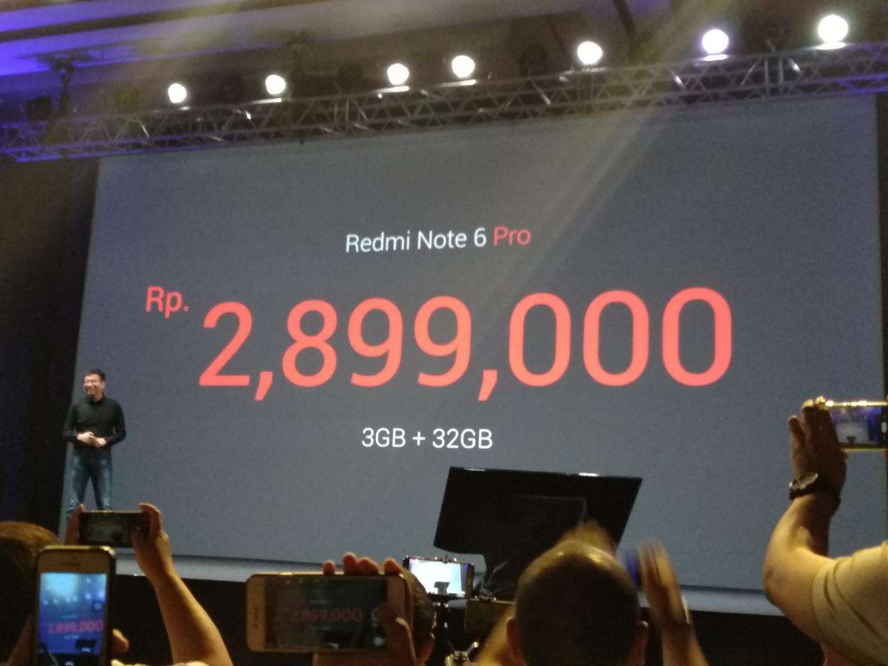 Redmi Note 6 Pro terbagi dalam 2 versi, yaitu versi RAM 3 GB dan internal storage 32 GB yang dibanderol harga sebesar RAM 3 GB dan internal storage 32 GB, dan juga versi RAM 4 GB dan internal storage 64 GB yang dibanderol sebesar Rp3.299.000. Untuk Mi 8 Lite sendiri dibanderol harga sebesar Rp3.699.000. Adapun untuk Mi Band 3 dan Mi Home Security Camera 360° masing-masing akan dibanderol harga sebesar Rp499.000 dan Rp599.000.