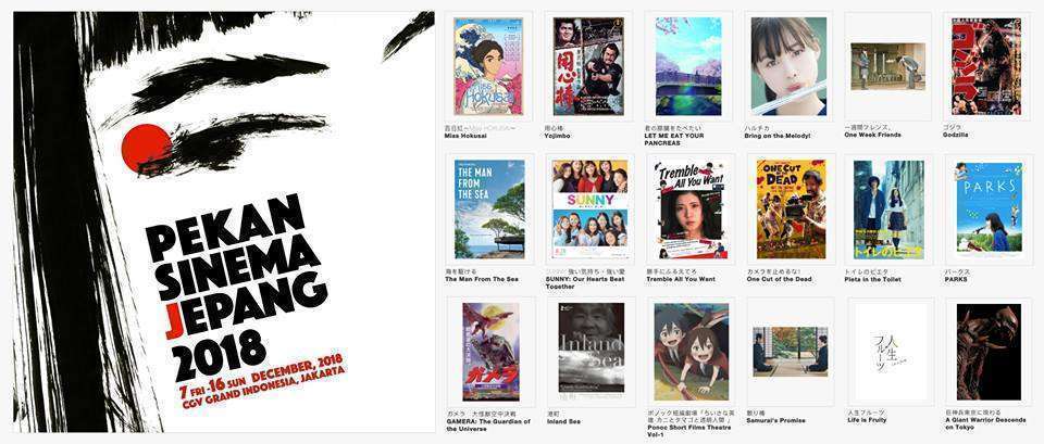 Visual Industry Promotion Organization (VIPO) bersama Agency of Cultural Affairs dan Japan Foundation akan menyelenggarakan pekan pemutaran film film Jepang di Indonesia Japan Cinema Week 2018 (Pekan Sinema Jepang 2018) bertempat di CGV Grand Indonesia, Jakarta 7-16 Desember 2018.
