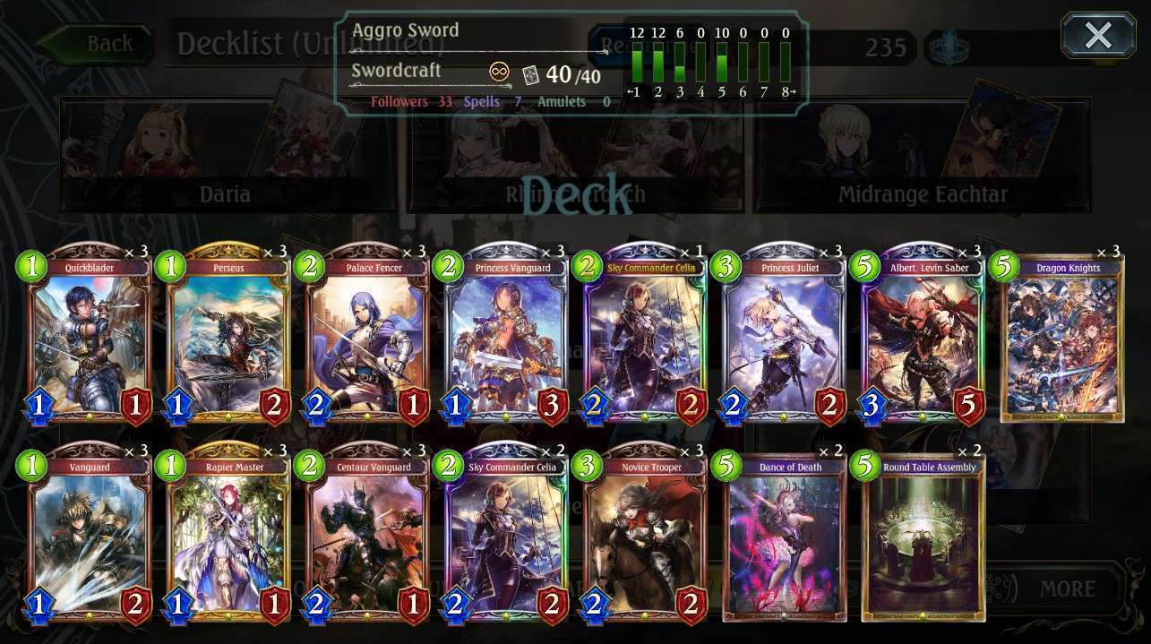 Tipe Deck ini sangat agressif, dengan komposisi kartu yang hanya diisi kartu yang Low-Cost, memungkinkan kalian untuk memainkan kartu dari turn pertama. Tanpa membuang satu playpoint yang tersisa. ini menjelaskan kenapa deck ini biasanya diisi oleh kartu ber-cost kecil yang sangat kuat, diantaranya follower yang mempunyai Storm atau Spell yang bisa memberikan damage ke leader musuh.