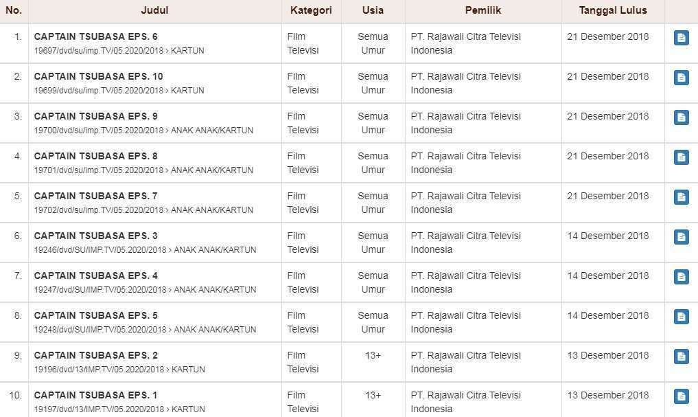 Kini, nampaknya publik di Indonesia juga akan kembali disambut dengan kehadiran kembali anime Captain Tsubasa di televisi lokal. Hal tersebut terungkap berdasarkan data pada Lembaga Sensor Film, di mana tercatat per Desember 2018, stasiun televisi RCTI telah mendaftarkan anime Captain Tsubasa ke Lembaga Sensor Film, di mana tak kurang dari 10 episode anime tersebut telah didaftarkan. Yang menarik, anime yang didaftarkan oleh RCTI ini kemungkinan besar adalah anime Captain Tsubasa versi terbaru yang diproduksi oleh David Production pada tahun 2018. Hal ini terungkap melalu pengakuan Hardi, seiyuu Kojiro Hyuga di Captain Tsubasa: Road to 2002 versi penayangan Global TV pada tahun 2017 lalu, di mana berdasarkan pengakuan di akun Facebooknya, Hardi tengah mengaku sedang mendubbing anime Captain Tsubasa 2018.