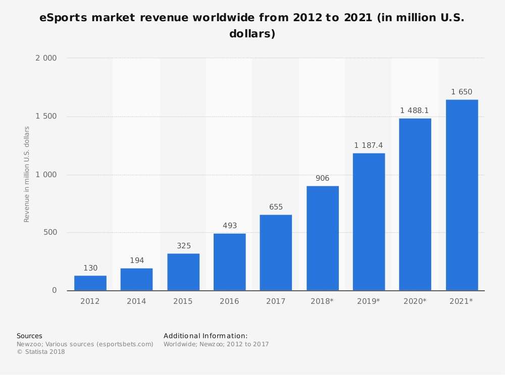 E-Sports dan gaming menjadi salah satu topik hangat yang dibicarakan oleh masyarakat di tahun 2018. Mengambil data riset dari Statista, pendapatan di sektor eSports telah berkembang hingga mencapai empat kali lipat dibandingkan sejak tahun 2012, yang mana hingga tahun 2017 pendapatan di sektor eSports mampu mencapai 493 juta Dollar AS. Lebih jauh lagi, riset tersebut memperkirakan kancah kompetisi video gim di tingkat profesional akan mampu menarik revenue hingga 1,6 milliar Dollar AS.