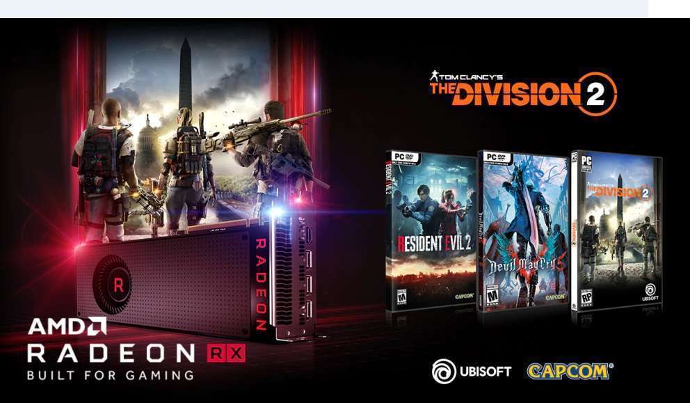 Dengan paket AMD ‘Raise the Game Fully Loaded’, AMD menawarkan Resident Evil™ 2, Devil May Cry™ 5 dan Tom Clancy’s The Division® 2 versi PC yang sangat dinanti-natikan kepada para gamers secara gratis dengan pembelian kartu grafis AMD Radeon ™ VII atau PC yang ditenagai oleh Radeon ™ VII, maupun dengan pembelian kartu grafis Radeon™ lainnya dan PC bertenaga Radeon ™. Nantikan informasi lebih lanjut tentang program ini di: www.amd.com/raisethegame.