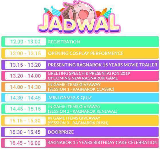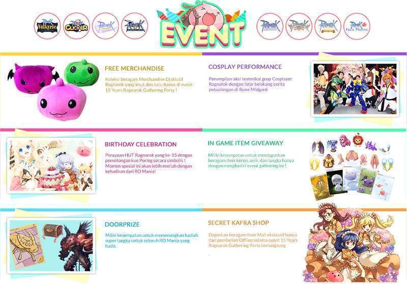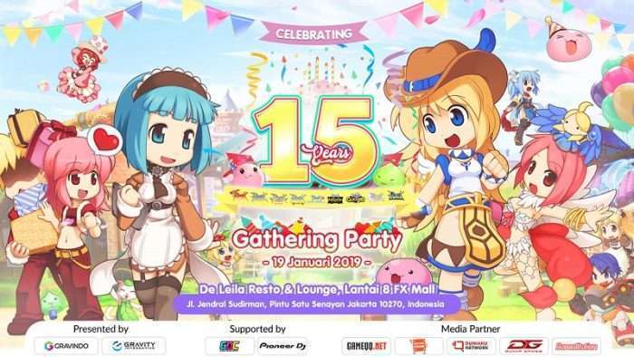 Dalam rangka perayaan 15 Tahun game Ragnarok di Indonesia, Gravindo selaku perwakilan resmi Gravity di Indonesia mengundang seluruh pecinta game Ragnarok, mulai dari Ragnarok Classic PC hingga Ragnarok M untuk hadir di acara “15 Years Ragnarok Gathering Party” yang rencananya akan dilaksanakan pada hari Sabtu, 19 Januari 2019, pukul 12.00 – 16.00 WIB, bertempat di De Leila Resto & Lounge, Lantai 8 FX Mall, Jl. Jendral Sudirman, Pintu Satu Senayan, Jakarta.