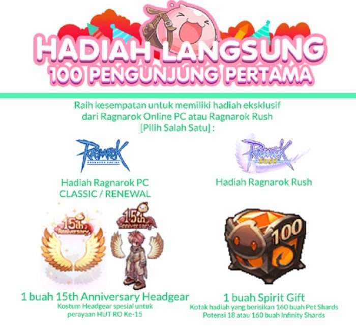Selain itu, Ragnarok PC dan Ragnarok Rush akan membagikan hadiah spesial bagi 100 pengunjung pertama di acara Gathering ini.