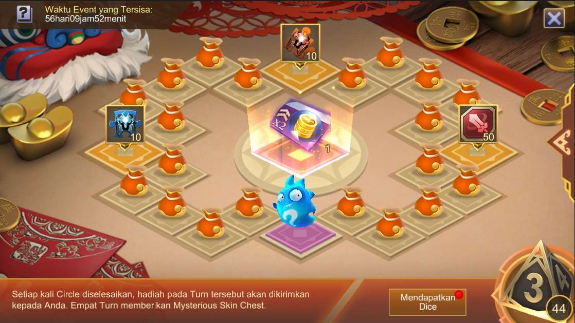 Pemain dapat berpartisipasi dalam Event “New Year’s Adventure” dengan menyelesaikan misi, dadu didapatkan dari halaman event, yang akan direfresh setiap hari. Jika telah selesai 1 round akan mendapat hadiah dari Round tersebut. Setelah diklaim, hadiah untuk setiap Round akan di-Refresh. Round kelima ada New Year Skin Chest, yang di dalamnya ada sebuah Skin permanen. Setelah event berakhir, Dadu akan diubah menjadi sejumlah BP secara otomatis dan masuk ke mail.