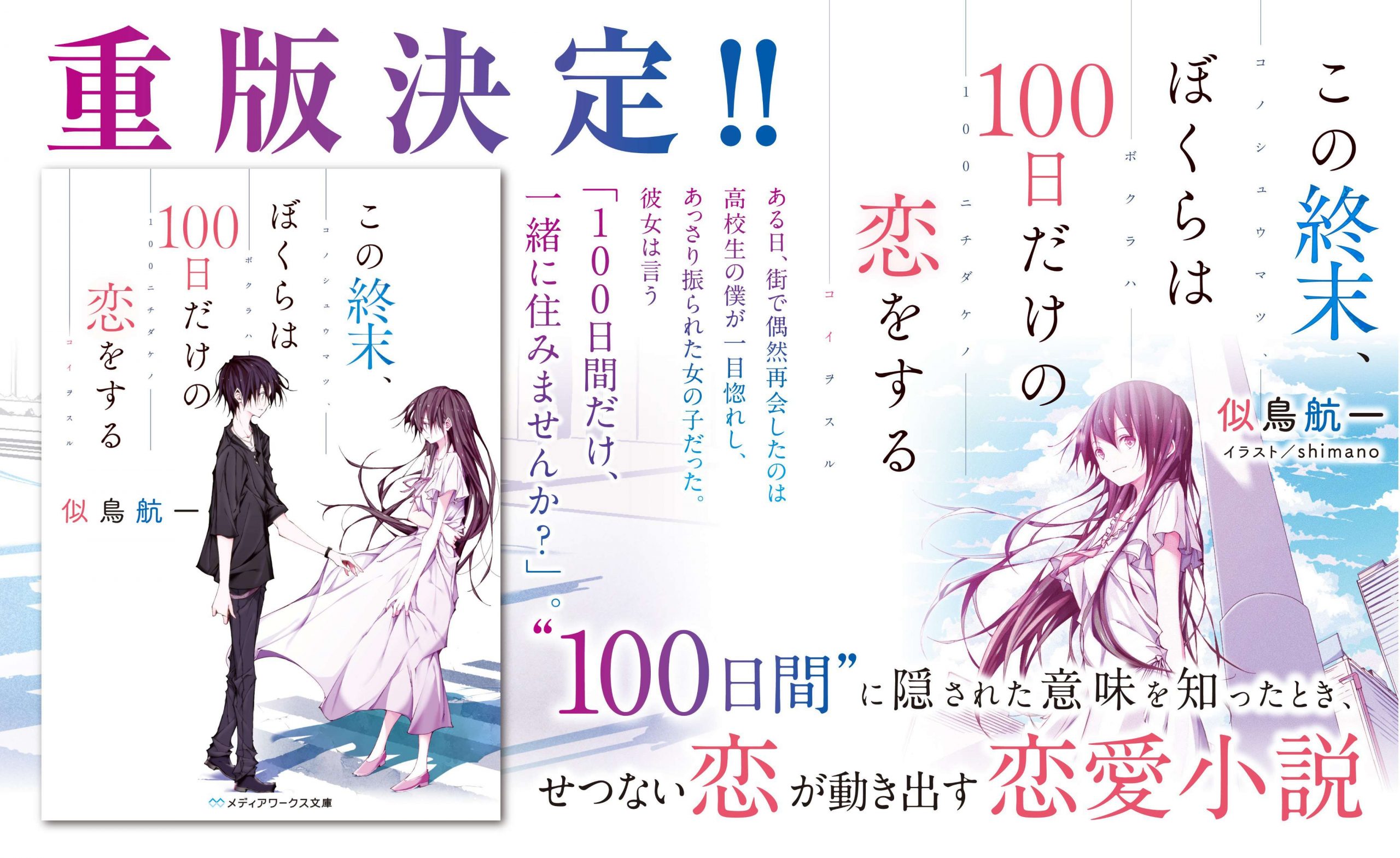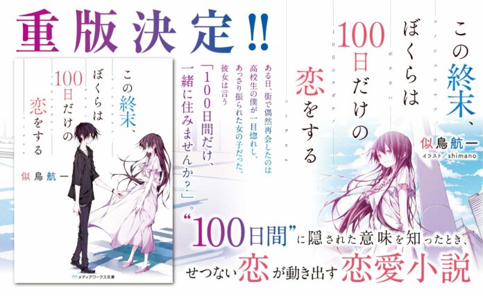 Novel yang saya ulas kali ini adalah novel yang berjudul “Kono Shuumatsu, Bokura wa 100-nichi Dake no Koi wo Suru“. Novel ini dirilis pada 22 Desember 2017, dengan shimano (Kimi to Itai, Kuchihateru Made) sebagai ilustratornya. Novel ini memiliki 290 halaman yang terbagi dalam 5 bab.