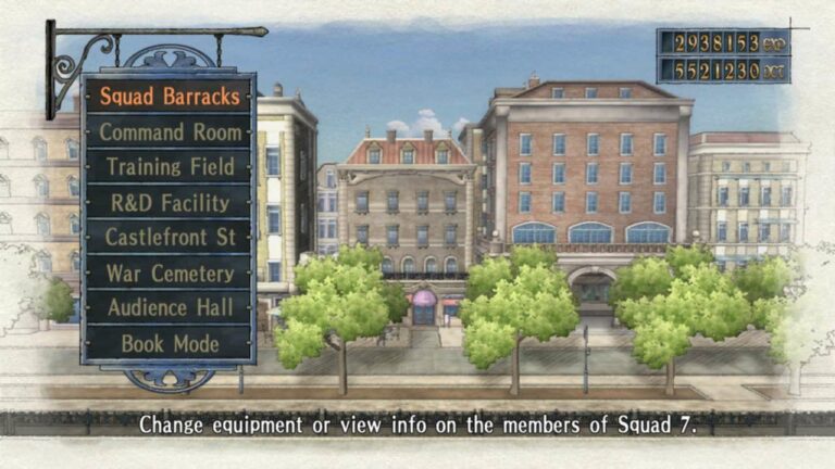 Pilihan menu yang cukup berbeda dari yang lain adalah Headquarter. Di dalam menu ini, nantinya pemain akan diarahkan menuju tampilan menu baru dengan opsi – opsi menu lainnya. Menu yang berada pada Headquarter ini berhubungan langsung dengan perang nantinya. Misalnya saja pemain bisa memilih anggota squad yang akan dibawa dalam perang nanti dalam menu Command Room. Pemain juga bisa melakukan upgrade senjata dalam menu R&D Facility. Menu dalam gim ini mungkin memang terlihat rumit pada awalnya, namun setelah pemain terbiasa, justru menunya akan terasa sangat membantu dan mudah untuk dioperasikan. Info – info yang lengkap mengenai karakter, senjata, dan unsur lain dalam menu – menu tersebut menjadi sesuatu yang patut diapreasi dari Valkyria Chronicles. Satu – satunya hal yang cukup menganggu adalah tidak adanya fitur auto save di dalam gim ini. Untuk para gamer yang pelupa seperti saya, hal ini tentunya sangat menyebalkan.