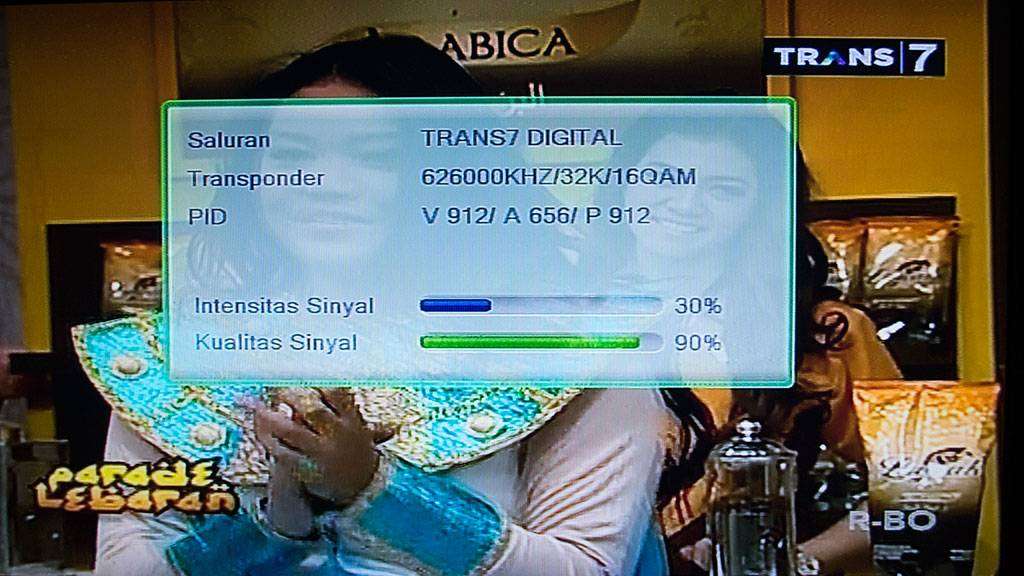 Kekuatan sinyal bervariasi dari 30% sampai 90% (multipleks TVRI). Kualitas sinyal sendiri ditentukan dari kualitas antena, kabel, dan pemasangan jack yang benar.