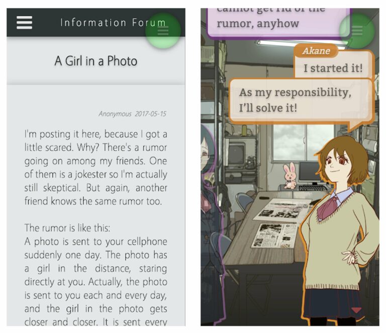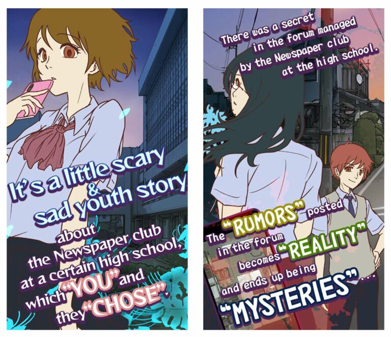 Jika Anda adalah penggemar novel visual, pernahkah Anda bermain novel visual di smartphone Anda? Jika belum, maka Anda disarankan untuk mencoba salah satu dari novel visual yang tersedia di iPhone maupun Android karena akhir-akhir ini, gim ber-genre novel visual yang satu ini sedang hangat dan banyak dirilis di kedua platform tersebut. yaitu Mysterious Forum and 7 Rumors. Novel visual tersebut mengusung tema horror dan cukup populer di Google PlayStore.