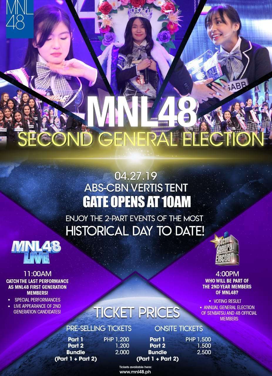 Di sisi lain MNL48 juga sedang mengadakan 2nd Senbatsu General Election. Seperti yang kita ketahui, salah satu ciri khas grup idola 48 Group adalah jumlah anggotanya yang banyak. Tentu saja tidak semua anggota bisa ditampilkan semua dalam satu kesempatan yang sama, karena itu dipilih beberapa member untuk mewakili. Member-member terpilih inilah yang disebut dengan Senbatsu, ada yang dipilih melalui manajemen dan melalui fans.
