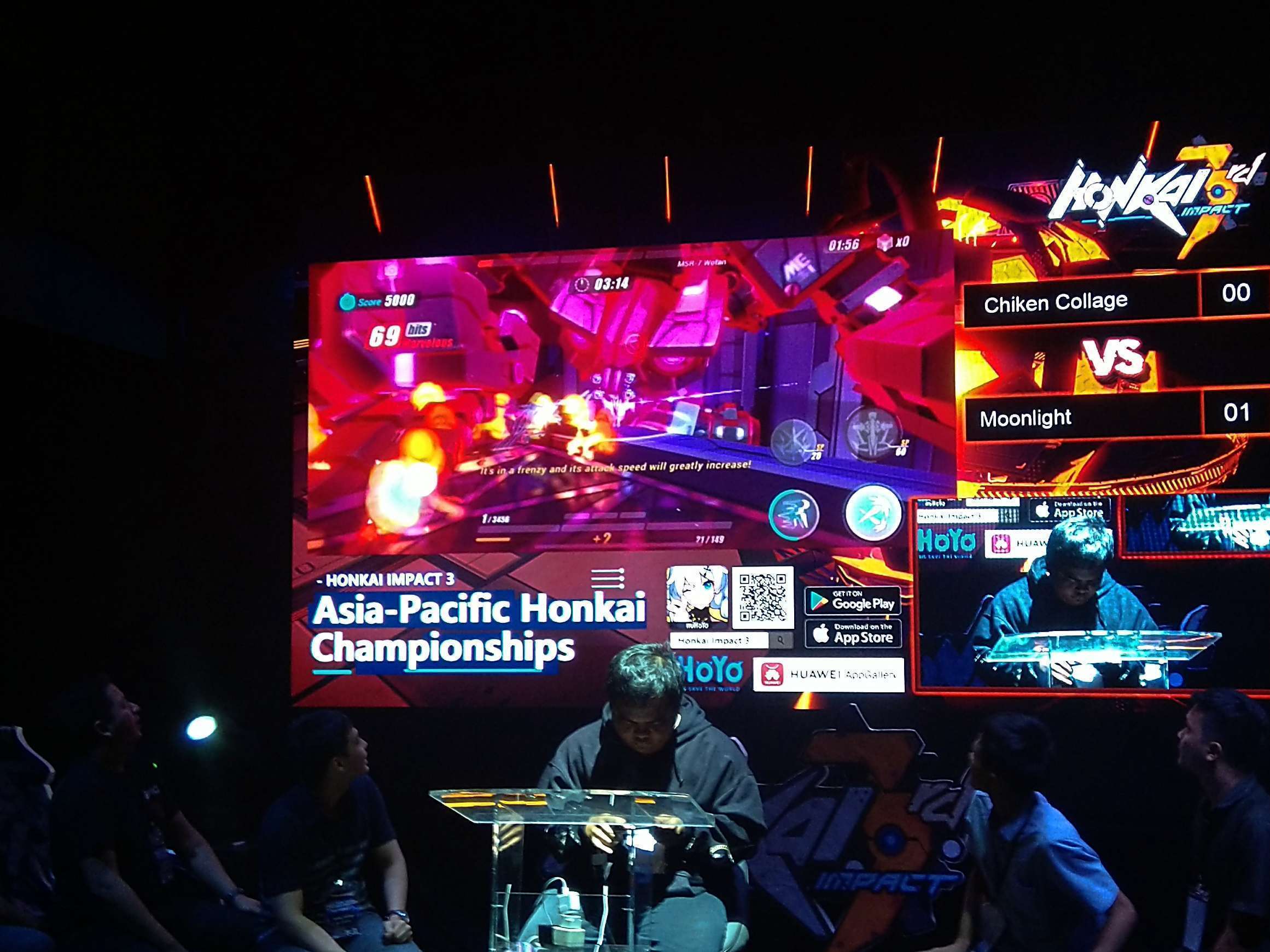 Lalu, bagaimana dengan babak grand finalnya? Tim Moonlight langsung tampil menekan sejak ronde pertama. Bila tim lainnya memilih menggunakan karakter Valkyrie S-Rank yang meta dalam kombinasi line-up-nya (pemain menggunakan 3 karakter Valkyrie yang dapat dipakai bergantian dalam satu stage), seperti Kiana – Herrscher of The Void, Fu Hua/Fuka – Phoenix, atau Himeko – Vermillion Knight, mereka menggunakan Kiana – Valkyrie Ranger sebagai salah satu line-upnya. Dengan memanfaatkan skill Ultimate Evasion-nya, Singularity, secara cermat untuk mengumpulkan musuh sebelum dihabisi oleh karakter lain, mereka mampu menyelesaikan match dengan tempo yang jauh lebih singkat dibanding tim lainnya. Di ronde pertama, tim Moonlight langsung unggul 1-0 melawan tim Chicken College.