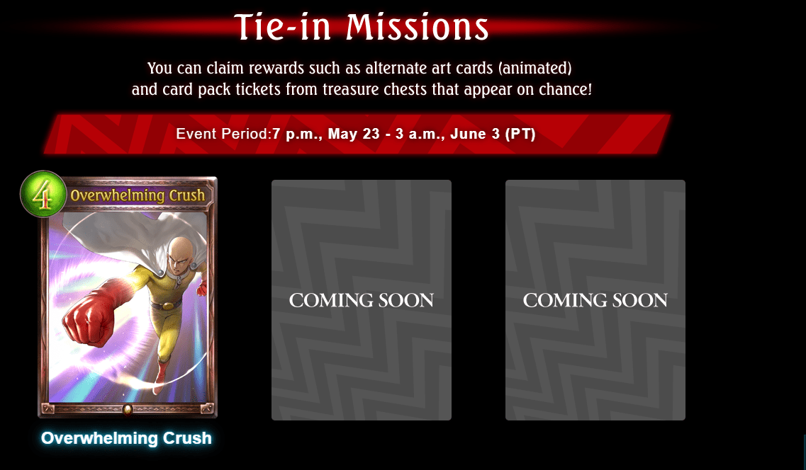 コラボ情報の詳細はこちらからhttps://t.co/zvOghGjJiS#onepunchman #シャドウバース pic.twitter.com/AoxiXTh1N4— Shadowverse公式アカウント (@shadowverse_jp) May 16, 2019