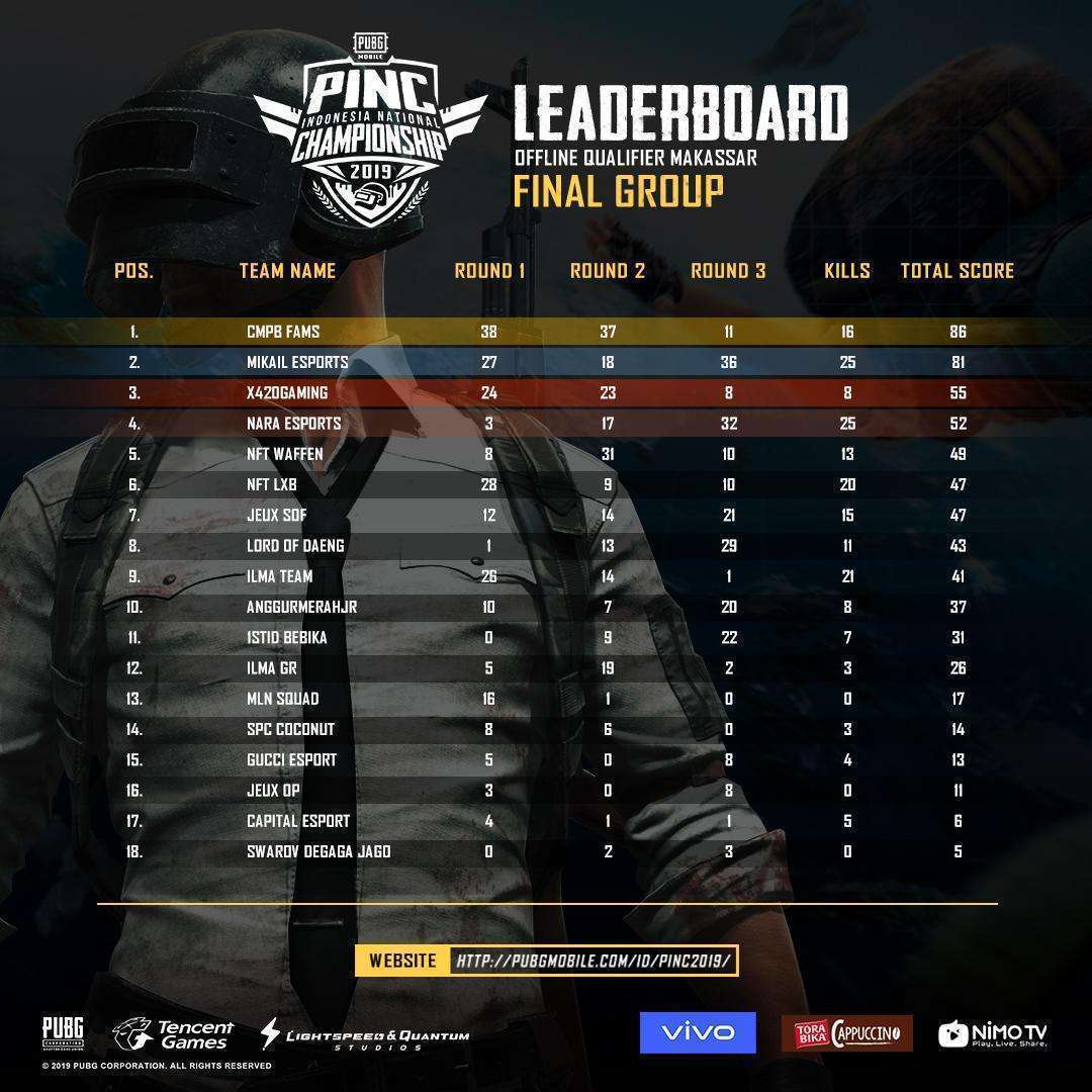 Pengumuman klasemen akhir pun ditunggu, dan CMPB mampu keluar sebagai juara dan hampir saja tertikung oleh MIKAIL dengan selisih 5 poin saja.