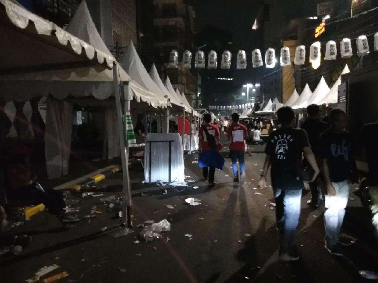 KAORI Nusantara sendiri sempat mengabadikan sejumlah momen-momen setelah perhelatan Ennichisai 2019 berakhir, dan para pengunjung sudah pulang ke rumah masing-masing. Nampak para penjaga booth yang tengah berkemas-kemas, sejumlah mobil-mobil besar yang melakukan loading keluar barang, booth yang sudah kosong ditinggalkan penggunanya, suasana Blok M yang sudah mulai lengang, sejumlah pengunjung yang sedang berjalan pulang ataupun masih bersantai kongkow di minimarket yang masih buka, hingga sampah yang cukup banyak berserakan di jalan. Berikut adalah foto-foto yang berhasil diabadikan tim KAORI: