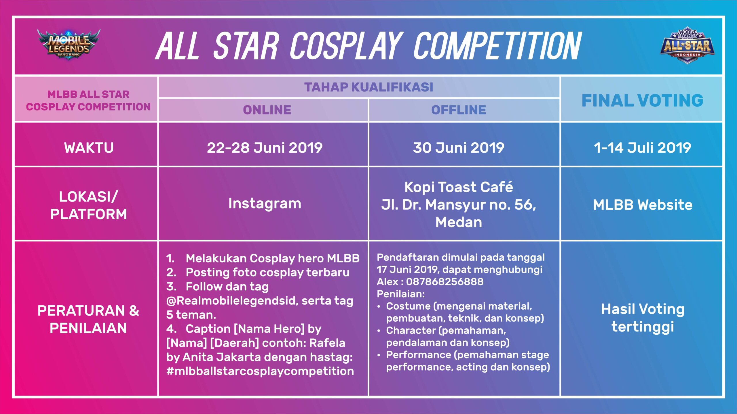 Tahapan Cosplay Competition dapat dilihat di tabel di bawah ini: