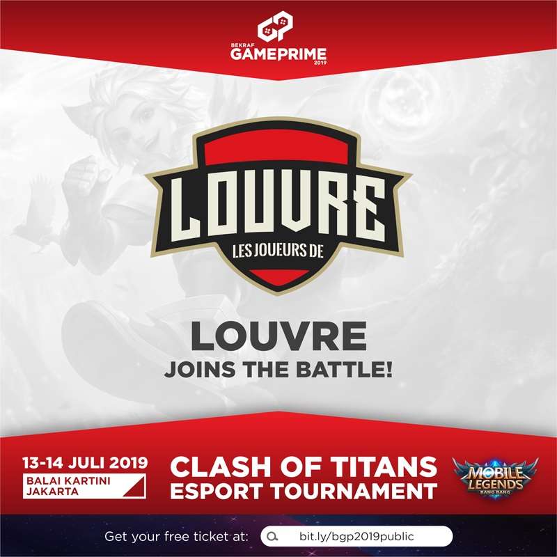 Tim Mobile Legends Louvre Esports merupakan salah satu kekuatan yang disegani saat ini. Dalam tiga gelaran turnamen besar terakhir, yaitu MPL season 3, Piala Presiden, serta MSC 2019, mereka selalu berhasil menembus babak final namun tiga kali pula menjadi runner up. Pada Clash of Titans di BEKRAF Game Prime 2019, Louvre tentu bertekad mematahkan runner up streak untuk menjadi yang terbaik.