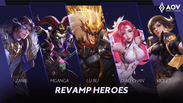 Dalam menyambut AOV Battlefield 3.0, Hero Diao Chan, Violet, Lu Bu, Zanis, dan Mganga mendapatkan Revamp di dalam Game yaitu. Kelima Hero tersebut mendapatkan perubahan yang cukup signifikan dimana grafiknya kini tampil dengan definisi tinggi sehingga memanjakan mata.