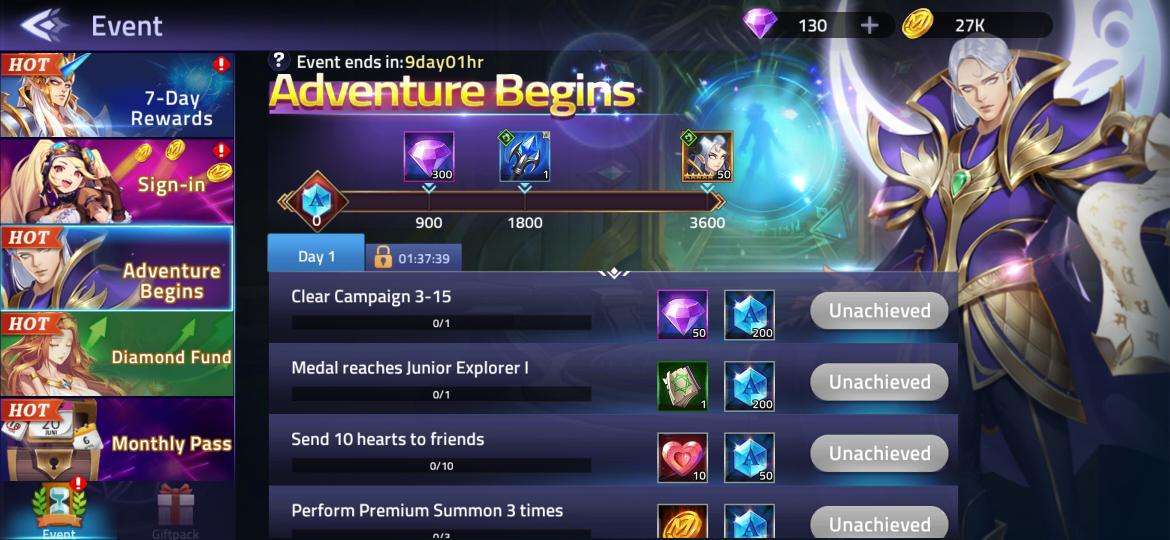 Adventure Begins merupakan event dalam game MLA, di mana dalam 10 hari pertama setelah Server diluncurkan, pemain dapat memperoleh hadiah besar dengan menyelesaikan Quest. Hadiah terbesar adalah 5-Star Epic Hero Hylos.