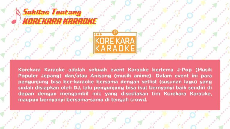 Apa saja yang bisa dilakukan selama acara ini berlangsung? Tentu saja para pengunjung bisa dengan bebas berkaraoke. Pengunjung bisa berkaraoke menyanyikan beberapa lagu cover BanG Dream! yang sudah disiapkan. Tidak perlu takut lupa lirik karena saat acara ini berlangsung pengunjung bisa membaca lirik lagu di depan layar yang sudah dipersiapkan.