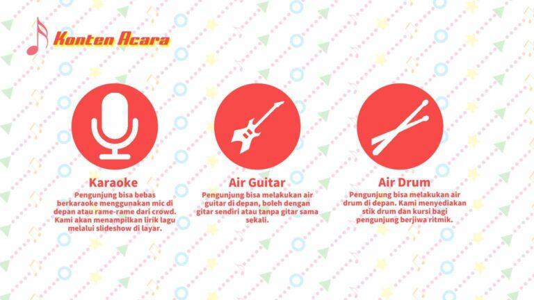 Pengunjung boleh bernyanyi bersama-sama di keramaian atau ingin unjuk gigi bernyanyi di depan pengunjung lain. Selain berkaraoke bersama, dalam acara ini pengunjung juga bisa unjuk gaya melakukan air guitar atau bahkan air drumming mengikuti alunan lagu yang diputar. Apapun bisa dilakukan selama masih menjaga ketertiban dan keamanan acara yang sedang berlangsung.