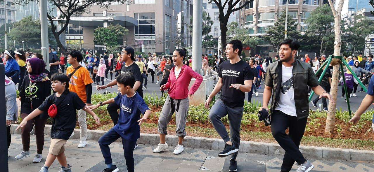 Kurang lebih dari satu bulan menuju tayangnya film ‘Gundala’ di berbagai bioskop Indonesia, para pemeran dengan antusias datang ke tempat keramaian untuk menyampaikan kabar bahagia tersebut. Mereka tak segan berbaur dengan masyarakat melakukan senam pagi dan bersenang-senang bersama. Saking antusiasnya, Abimana terus bergoyang mengikuti instruktur senam yang dihadirkan.