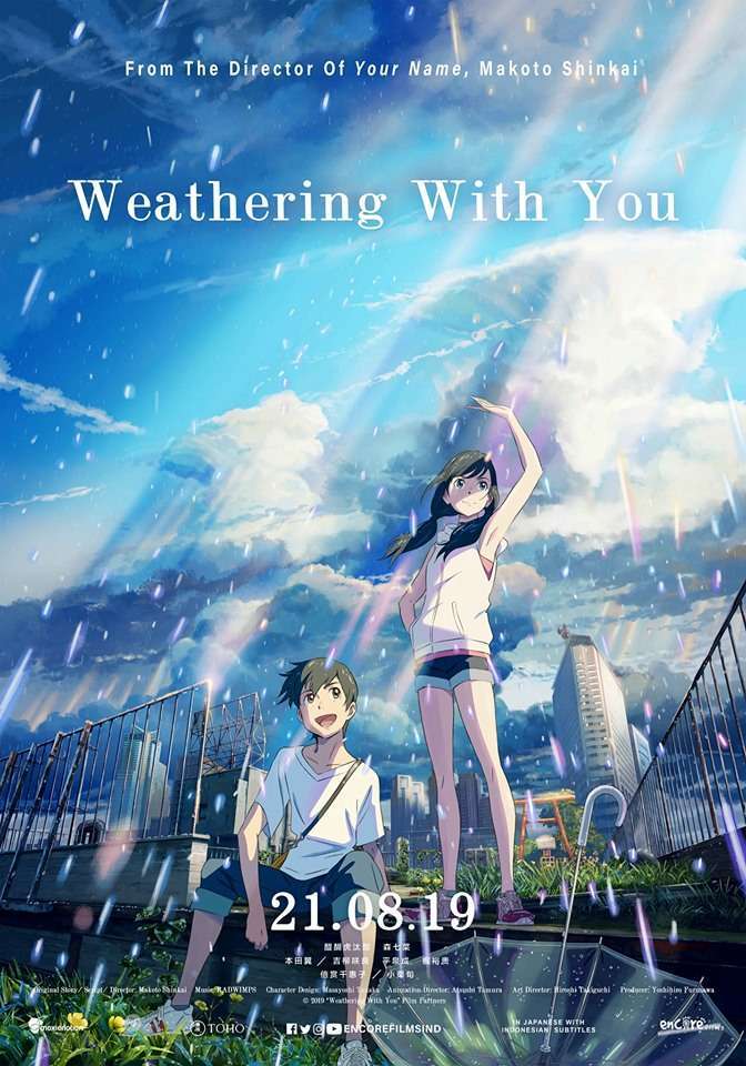Weathering With You film anime yang berkisah mengenai seorang remaja bernama Hodaka Morishima yang memulai hidup barunya di Tokyo, dan bekerja di sebuah majalah lokal mengenai fenomena supranatural dan hal-hal aneh lainnya. Satu hal yang menarik adalah tentang hidup Hodaka dengan cuaca yang aneh di mana hujan tak henti. Sementara itu, Hodaka bertemu dengan seorang gadis muda bernama Hina Amano yang memiliki kekuatan untuk mengontrol cuaca.