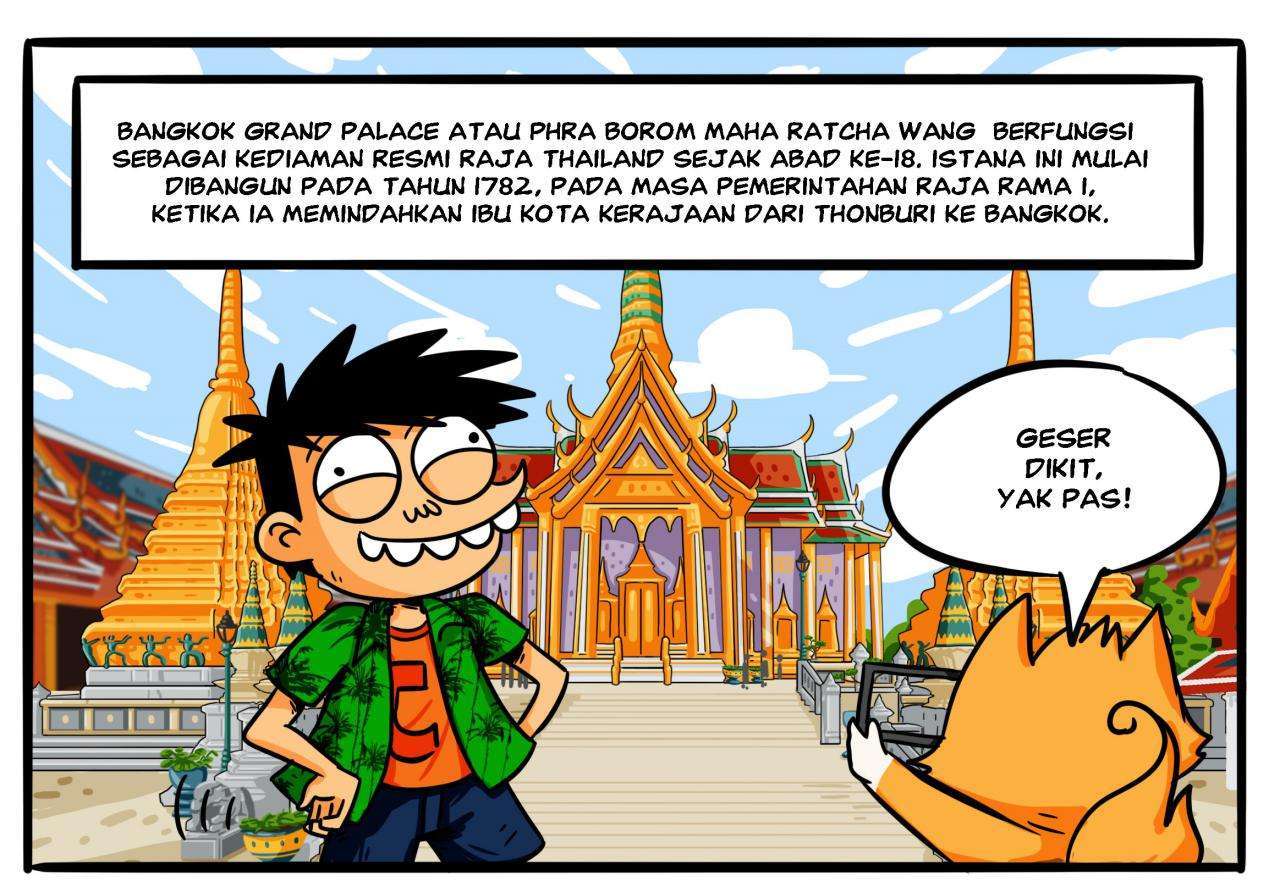 Thailand juga memiliki ragam kuliner khas yang sangat menarik bagi para wisatawan. Salah satu kuliner khas Thailand yang diangkat dalam pembuatan komik ini adalah Mango Rice dan Thai Tea, dua kuliner khas Thailand yang cukup naik daun di Indonesia. Makanan khas Thailand lainnya yang juga sangat menarik untuk dicoba adalah Roti Sai Mai khas Ayutthaya. Tidak hanya makanan yang menggugah selera, Thailand juga punya jajanan yang unik dan cukup “menantang” seperti serangga dan kalajengking goreng.