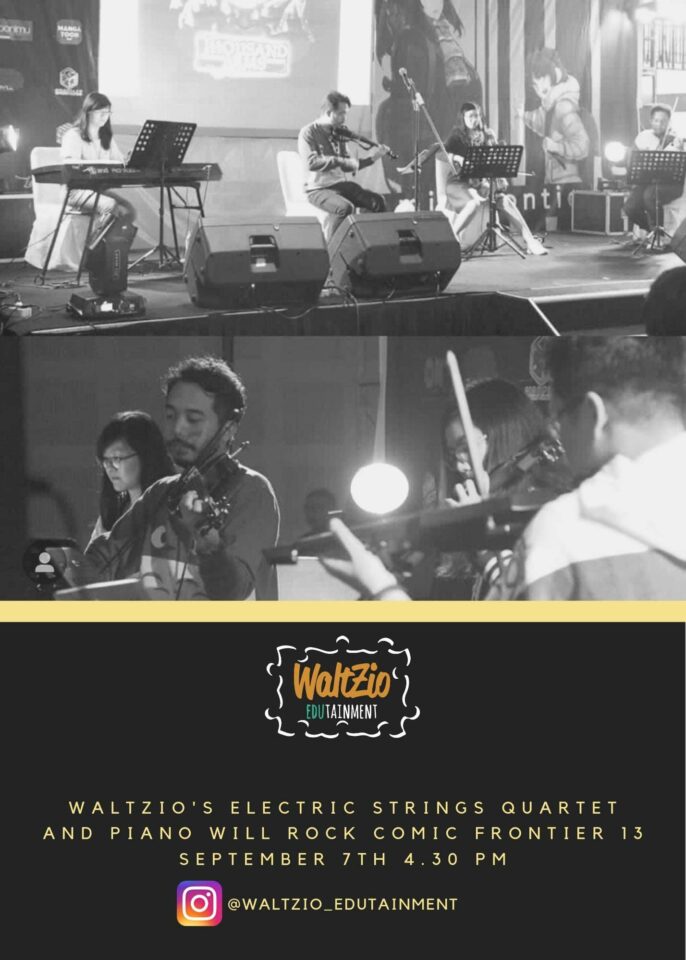 Selain itu, Comic Frontier 13 juga disemarakan oleh grup orkestra Waltzio Edutainment. Dikenal sebagai grup orkestra yang sering memainkan lagu soundtrack dari film karya studio animasi Ghibli seperti My Neighbor Totoro, membuat mereka dikenal di kalangan penggemar animasi Ghibli. Kepopuleran yang dimiliki juga membuat mereka diundang menjadi bintang tamu pada eksibisi khusus film animasi karya studio animasi Ghibli yang dilaksanakan di Jakarta. Selain itu, grup orkestra ini juga dikenal sering memainkan lagu soundtrack dari berbagai game JRPG klasik.