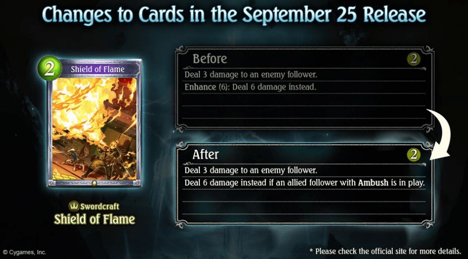 Selain merilis card pack terbaru, dalam update ini ada juga beberapa kartu yang telah di-buff, lebih tepatnya status dan efeknya dikembalikan ke semula untuk membantu keseimbangan permainan dalam gim ini. Berikut beberapa kartu yang di-buff kembali: