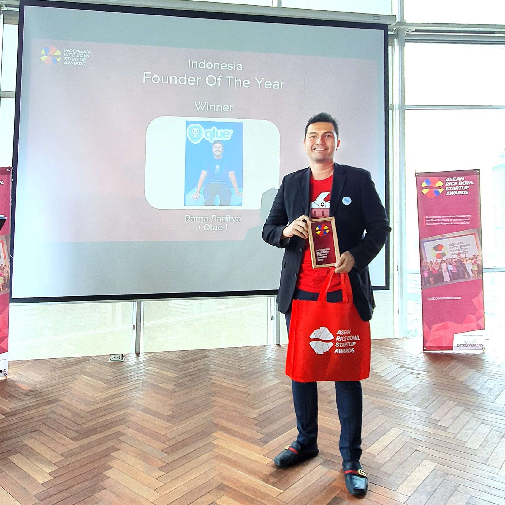 Rice Bowl Startup Awards diberikan kepada para startup sebagai penghargaan atas inovasi, keunggulan, dan kinerja terbaik mereka. Penghargaan ini juga mengapresiasi determinasi, risiko, dan kerja keras yang ada dalam pengembangan sebuah startup, dan juga pengaruh dari setiap individu dalam mencapai keberhasilan perusahaan mereka. Sebagai pemenang dari Indonesia, Qlue dan Rama Raditya nantinya akan bersaing dengan para pemenang dari negaranegara lain di ASEAN di ajang ASEAN Rice Bowl Startup Awards 2019 pada Januari 2020 mendatang di Kuala Lumpur, Malaysia.
