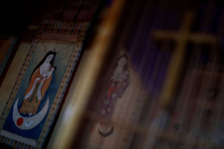 Masaichi Kawasaki tengah berlutut di hadapan altar bergambar Bunda Maria, sambil merapalkan doa-doa. Kawasaki, 69 tahun, adalah salah satu anggota dari komunitas Kakure Kirishitan atau Kristen Tersembunyi, sebuah komunitas penganut Kristen di Jepang yang menyembunyikan iman mereka selama berabad-abad demi menghindari penindasan pemerintah di masa lalu. Kerasnya persekusi dari pemerintah, mengakibatkan ritual mereka begitu tersembunyi dan penuh rahasia dan penuh dengan “penyesuaian”, hingga akhirnya lambat laun ritual keagamaan mereka menjadi tercampur dengan ajaran Buddha dan Shinto, termasuk dengan doa-doa yang turut dirapalkan Kawasaki terdiri dari campuran bahasa Latin, Jepang, dan Portugis.