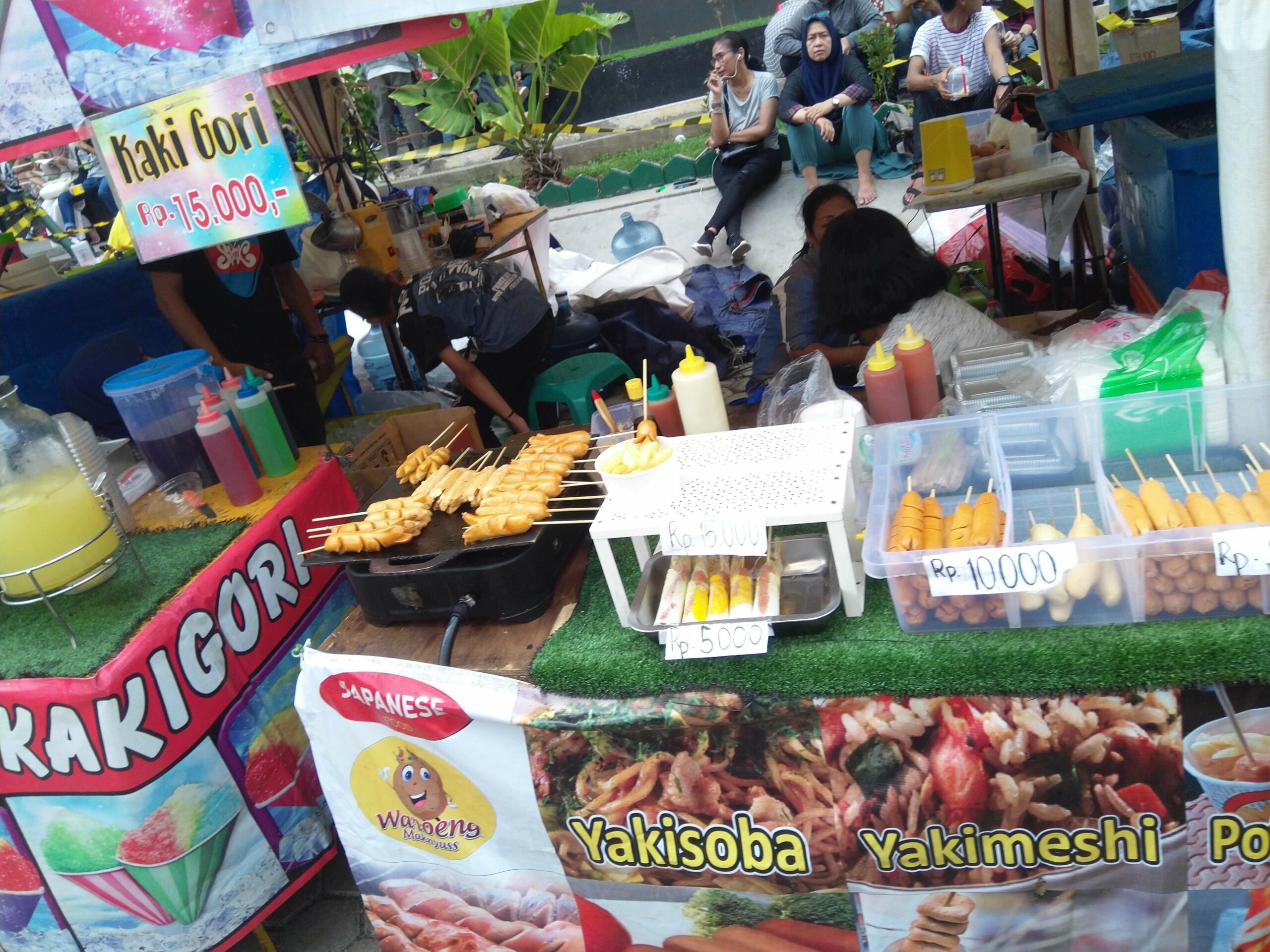 Sambil menangisi kekalahan telak di turnamen tersebut, saya pun melanjuti untuk menjelajahi event ini lebih dalam, sampai saya berhenti di area venue makanan, tampaknya Jsaya perlu mengucapkan ini; “bukan Jiyuu Matsuri jika tidak ada makanan ala Jepang yang bisa disantap.” Yap, ketika saya melihat gurita atau cumi saya tidak tahu jenis hewan tentakel yang dibakar itu, tetapi saya yakin itu adalah cumi raksasa yang lezat jika saya membelinya. Tidak berlama-lama, saya langsung memesan 1 porsi untuk saya sendiri. Hanya dengan merogoh kocek Rp. 35.000, saya bisa mendapatkan 1 kesempatan untuk mencoba cumi bakar itu.