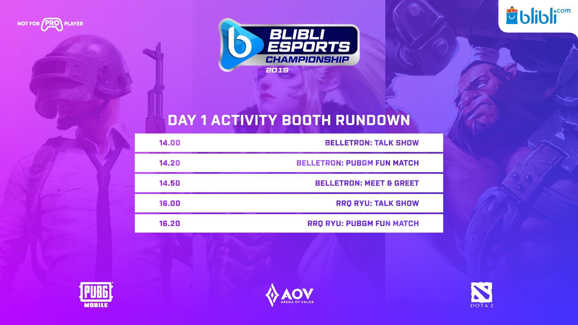 Sebagai salah satu pionir perusahaan e-commerce terbesar di Indonesia, Blibli.com sukses menghadirkan rangkaian turnamen esports khusus pemain non-profesional di tiga judul game yang berbeda. Dengan tajuk Blibli Esports Championship 2019, gelaran akbar esports Blibli.com mempertandingkan berbagai judul game terkenal, seperti Arena of Valor, Dota 2 dan PUBG Mobile, total hadiah mencapai 500 juta rupiah!