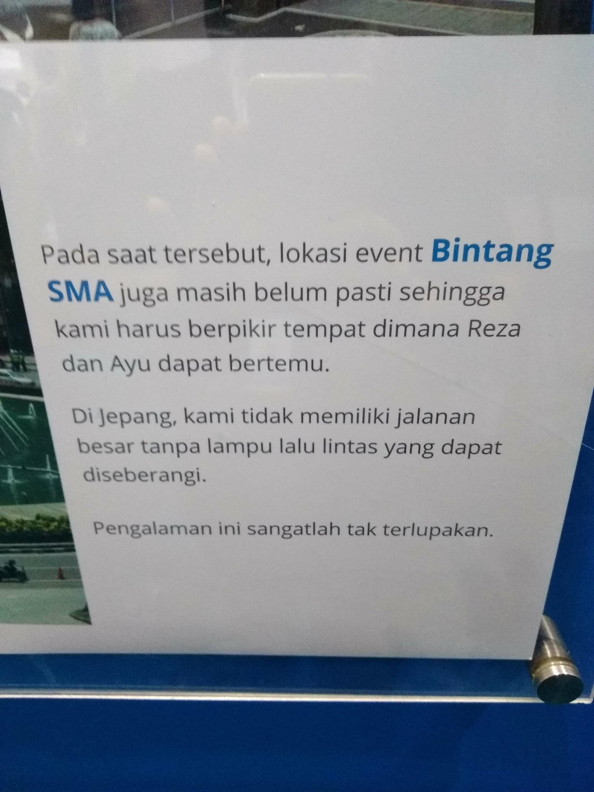 Tim KAORI Nusantara sempat berkunjung ke acara Pocari Festival, termasuk melihat-lihat proses di balik layar dari video iklan TVC POCARI SWEAT – Bintang SMA tersebut. Dalam salah satu ruangan yang didedikasikan khusus untuk video iklan tersebut, pengunjung bisa melihat sejumlah sketsa kasar maupun ilustrasi-ilustrasi lainnya akan video iklan bergaya anime karya Makoto Shinkai tersebut, lengkap dengan informasi-informasi menarik di dalamnya. Bukan itu saja, jika beruntung, mereka bisa bertemu dan mengobrol langsung bersama salah seorang tim yang juga turut datang langsung dari Jepang bersama Yoshitoshi Shinomiya sang sutradara. Kru tersebut adalah Ryoichiro Matsuo yang bertindak sebagai Animation Producer.