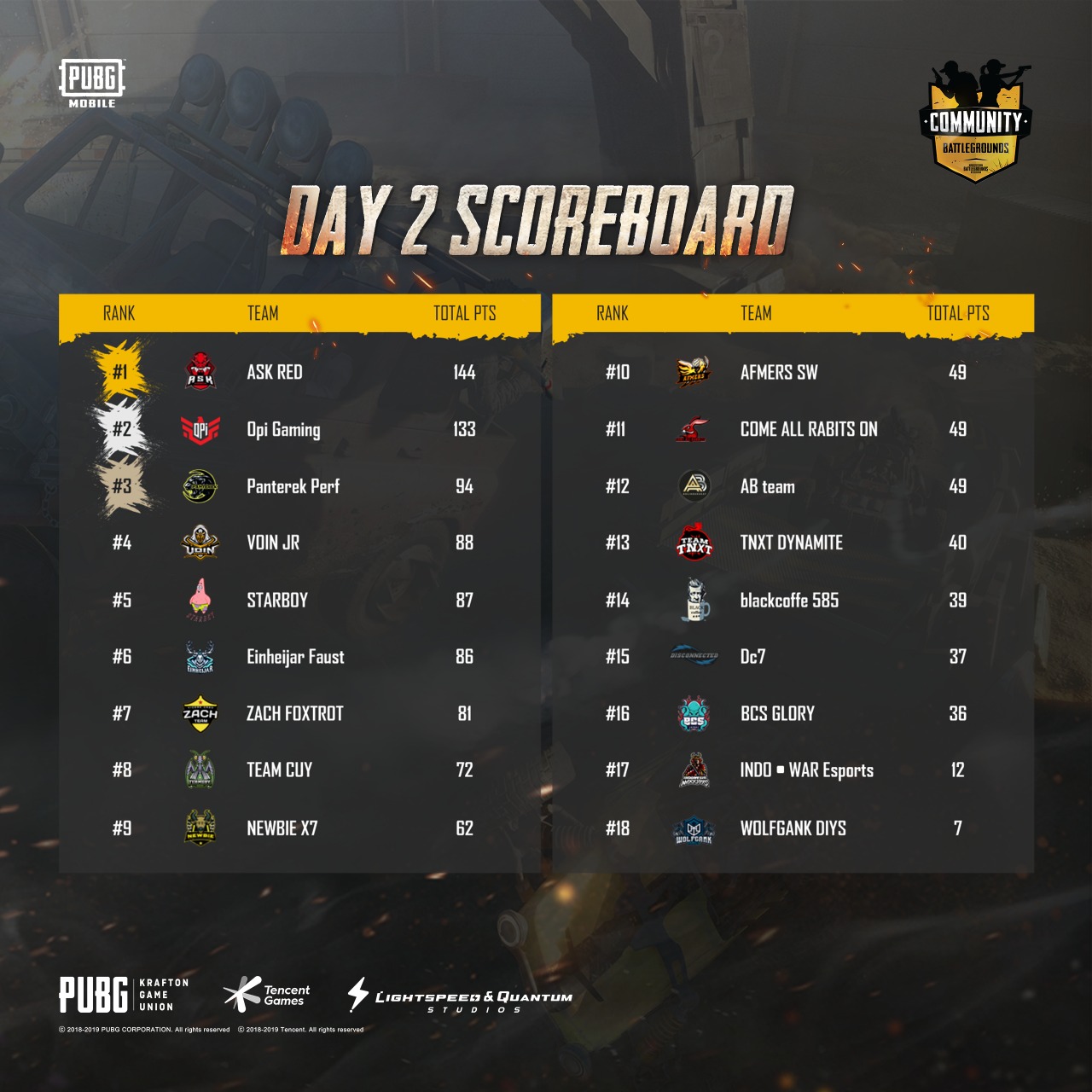 Adalah Ask Red, tim ini sukses mendominasi hari kedua Grand Final dengan memperoleh 144 poin. Atas perolehan tersebut, Ask Red pun dinobatkan menjadi Grand Champion yang berhak membawa pulang hadiah sebesar 15 juta rupiah. Disusul oleh Opi Gaming di peringkat kedua dengan perolehan 133 poin dan Panterek Perf di peringkat ketiga dengan 94 poin.