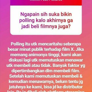 Berdasarkan polling yang dibuka pada 23 Oktober 2019 tersebut, terkumpullah hasil 92% responden menghendaki Feat Pictures untuk membeli film tersebut. Namun meski publik sudah menghendaki, melalui postingan di instagram story mereka, Feat Pictures mengonfirmasi bahwa pihaknya belum bisa memastikan untuk membawa film layar lebar Kimetsu no Yaiba tersebut, dikarenakan belum adanya keputusan dari penjual film yang bersangkutan mengenai distributor manakah yang akan memboyong film itu ke Indonesia.