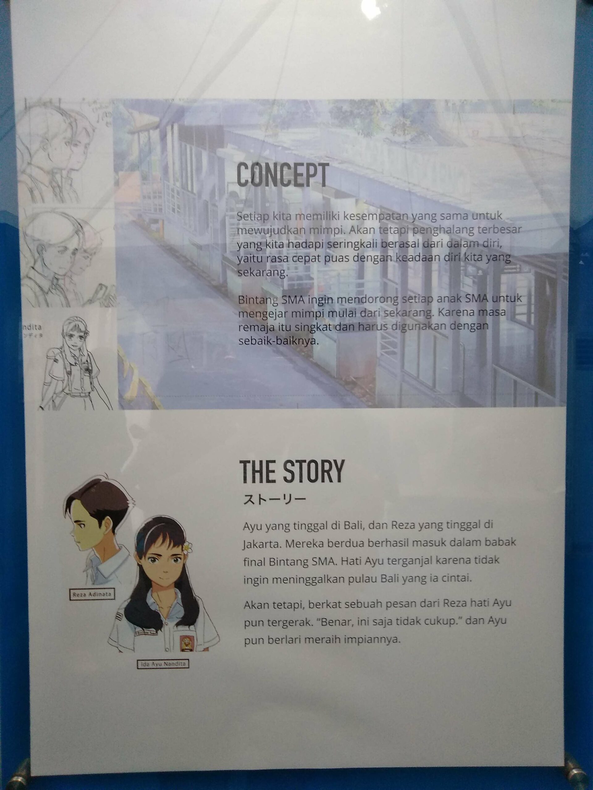 Saya juga dapat kesempatan mewawancari langsung dengan para siswa setempat. Saya bertanya langsung mengenai seragam apa yang mereka kenakan, aksesoris apa yang mereka bawa, dan juga gaya rambut apa yang digemari oleh para siswa di indonesia. Sehingga lahirlah 2 karakter tersebut, Reza dan Ayu.