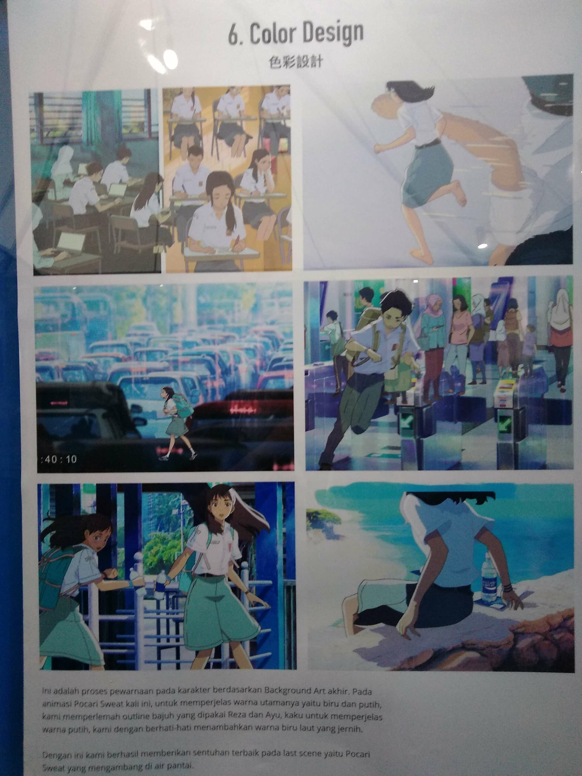 Referensi saya adalah hasil pengamatan saya sendiri seperti mengamati rambut siswa, sampai saya membeli sendiri seragam sekolah yg dipakai oleh siswa – siswa tersebut. Lalu skin color dan gaya rambut saya langsung komunikasikan dengan pihak Pocari Sweat berkali-kali hingga dapat sense sesuai selera Indonesia.