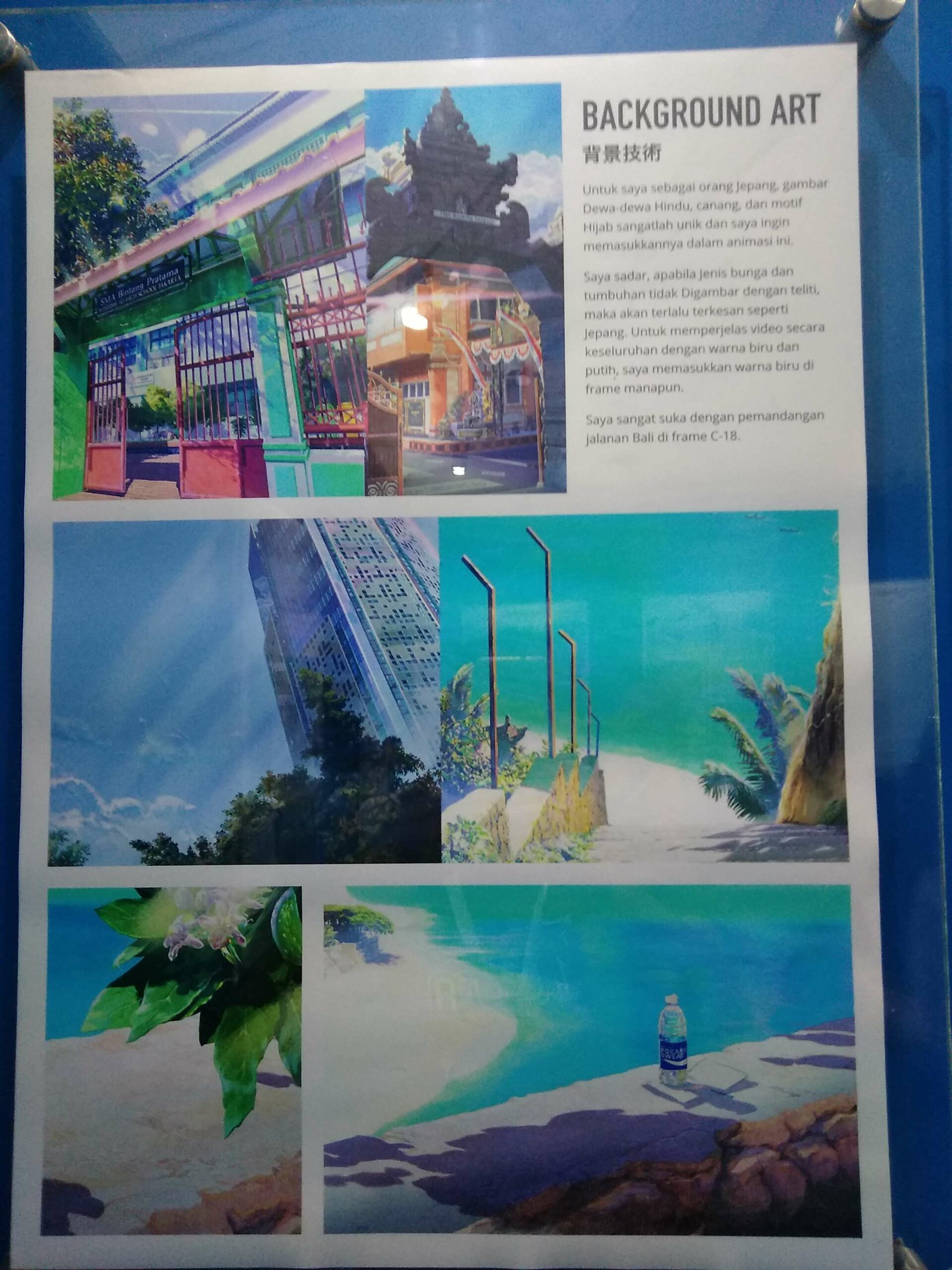 Seperti yang saya katakan sebelumnya. Indonesia memiliki populasi yang besar berbanding terbalik dengan Jepang yang sedikit anak mudanya. Saya melihat masyarakat indonesia cheerfull dan semangat dalam melakukan aktivitasnya. Sampai saya berubah pandangan 180° melihat negara ini. Indonesia sendiri dengan luas yang besar dan budaya yang variatif sehingga banyak inspirasi yang saya dapatkan di sini. Sebagai contoh saya di Jepang jarang melihat event – event keagaman dan budaya yang meriah seperti di Bali. Selanjutnya saya berpikir akan membawa nilai – nilai kebudayaan dan agama yang tidak terdapat di Jepang di karya anime berikutnya.