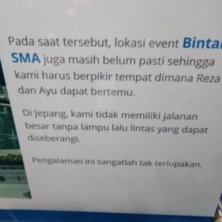 Karena saya bertemu anak muda di indonesia yg enerjik. Saya berpesan untuk para anak SMA di indonesia untuk terus semangat mengapai mimpinya.