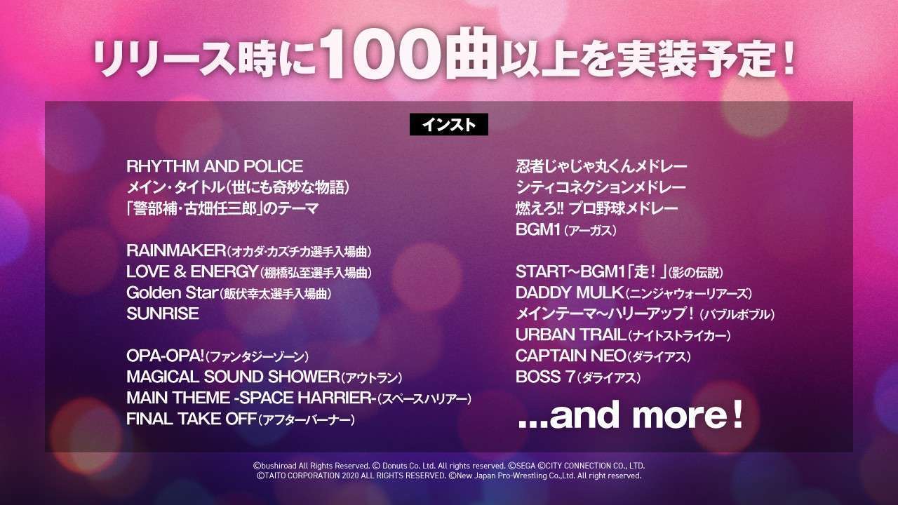 Selain itu, lagu – lagu yang tersedia di gim ini berupa lagu orisinil dan anisong cover yang berisi 100 lagu ternama yang sudah tentunya telah diberi sentuhan remix!